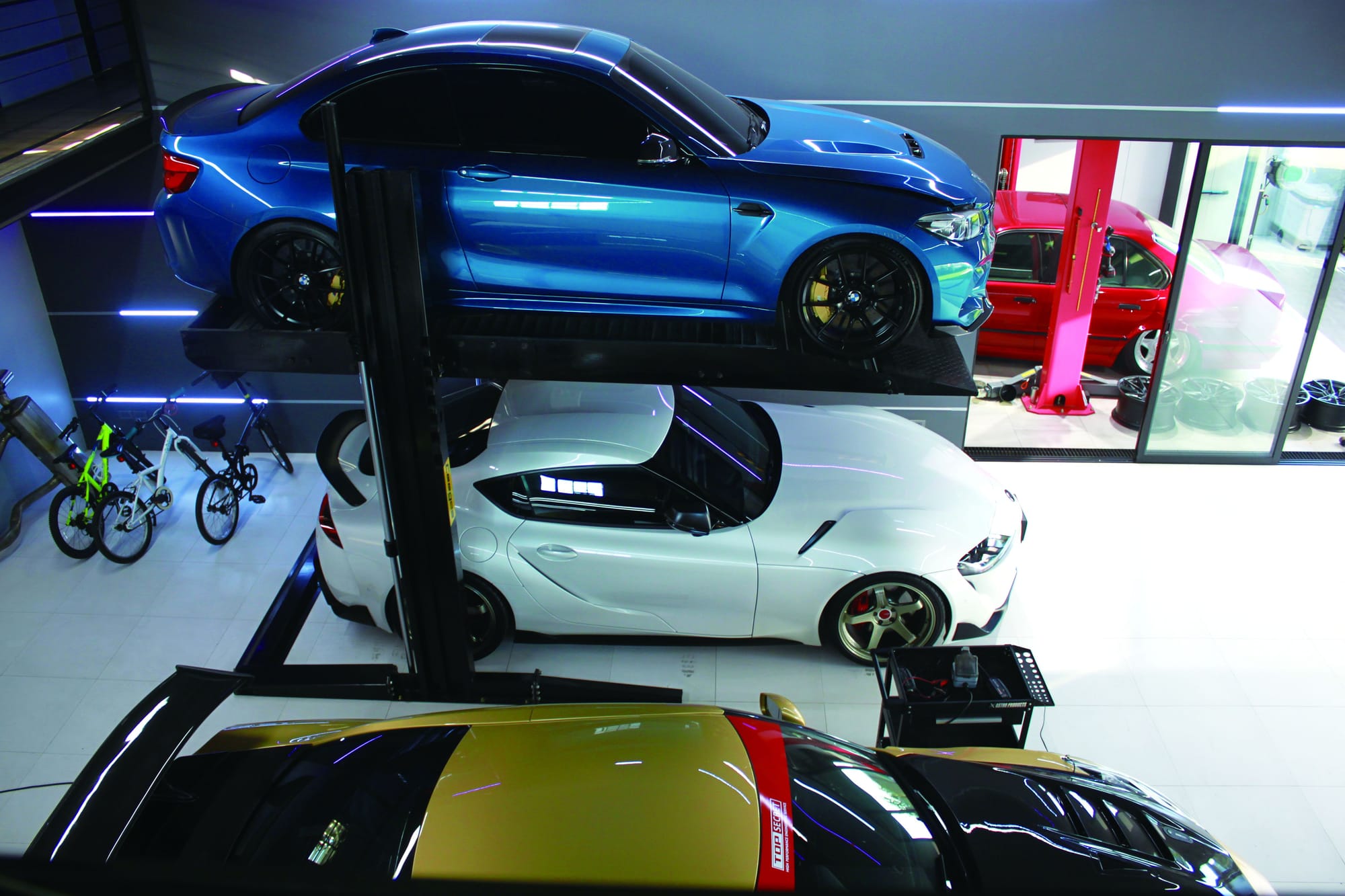 GarageLife Official Dealer 静岡の『大岡成光建築事務所』の大岡邸。 クルマを買い替えたことからガレージをリノベーション。 ショールームのようなガレージにすることで、 クルマを2台格納するスペースへと変貌を遂げた。