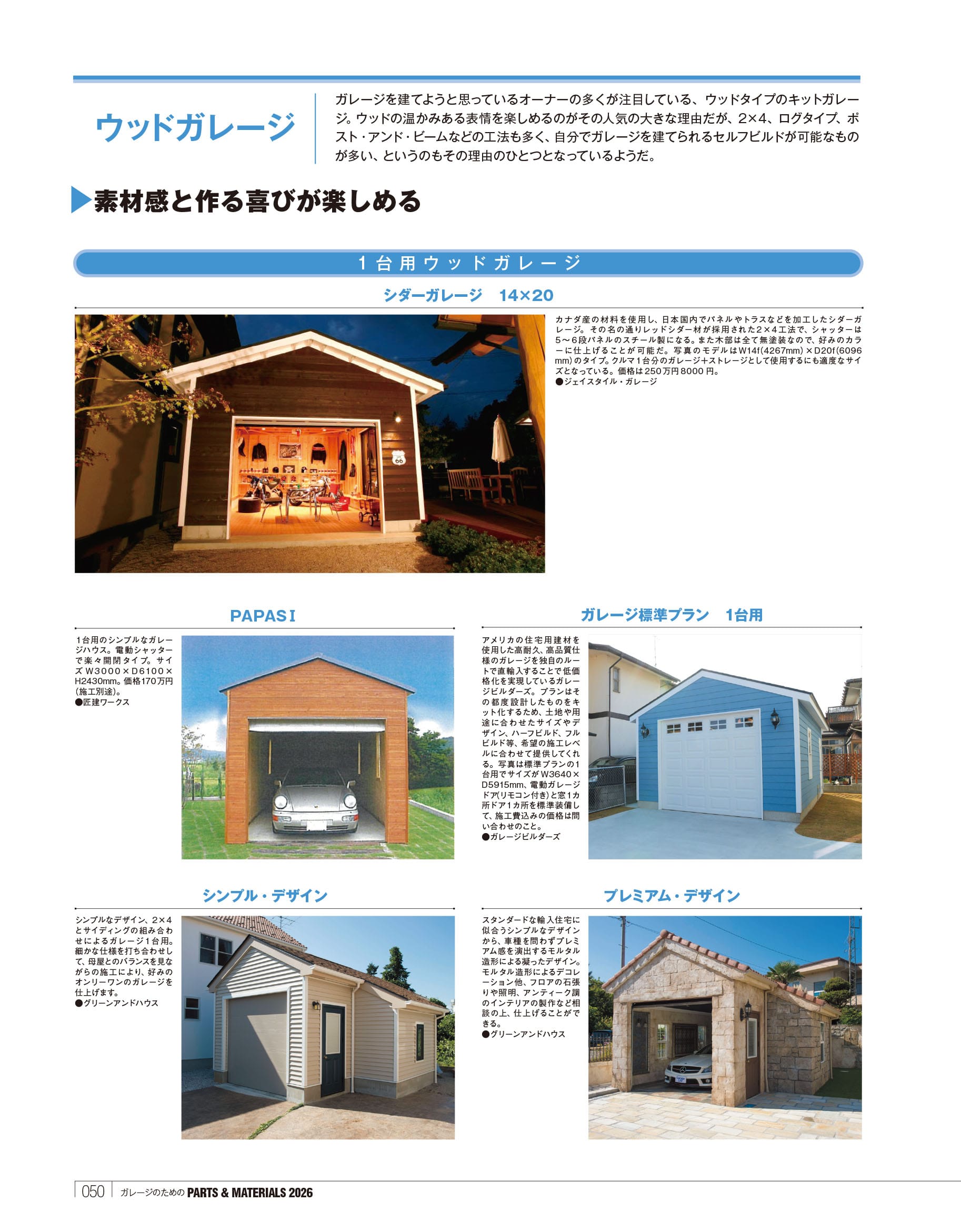 ガレージを建てるための参考書となる ガレージのためのPARTS&MATERIALS2026は2026/1/29に発売です。