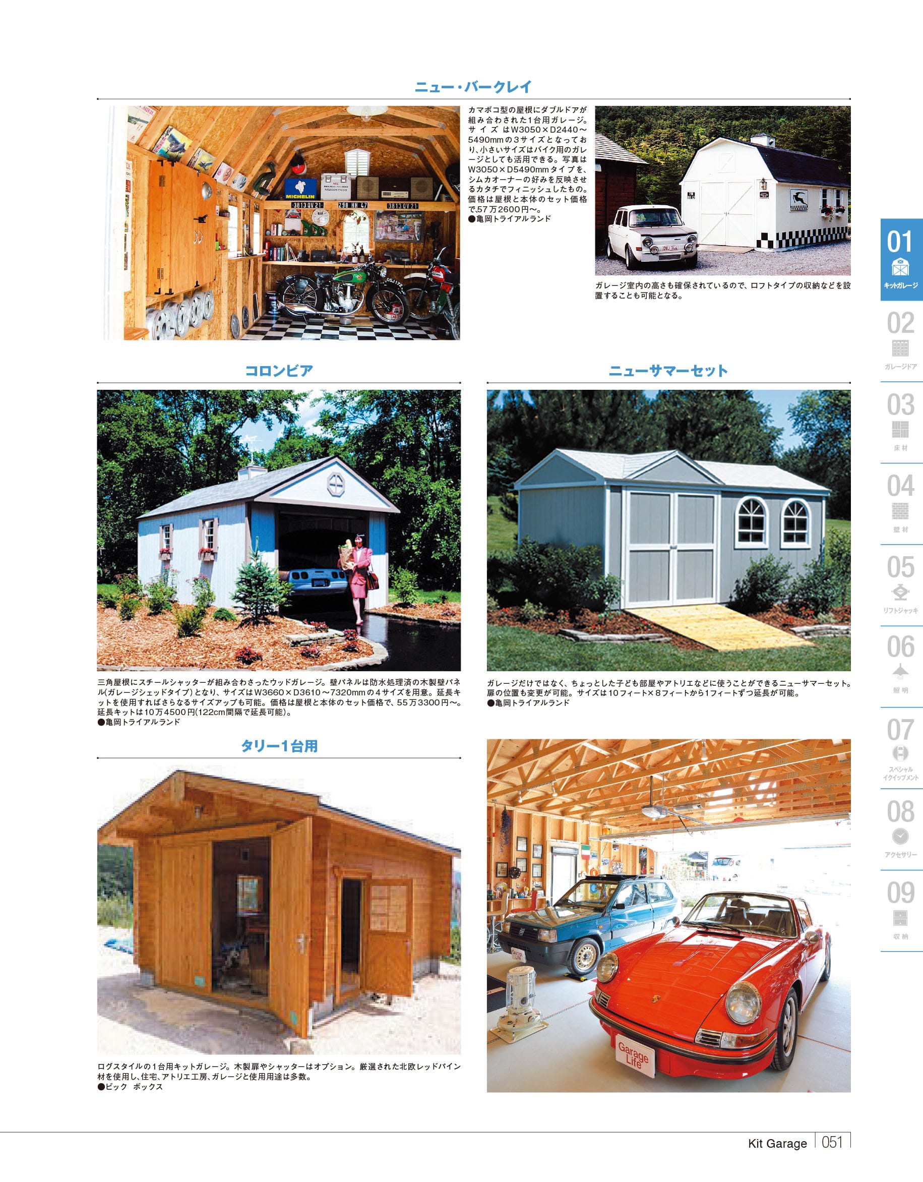そこで本書では、編集部が厳選した信頼できるメーカーに絞り、最新の商品情報を掲載。サイズや価格も明記した、実用性の高いカタログ的な一冊に仕上げている。また、すでにガレージを完成させた人に向けては、オートモビリアをはじめとする、ガレージ空間を彩るディスプレイアイテムも紹介。