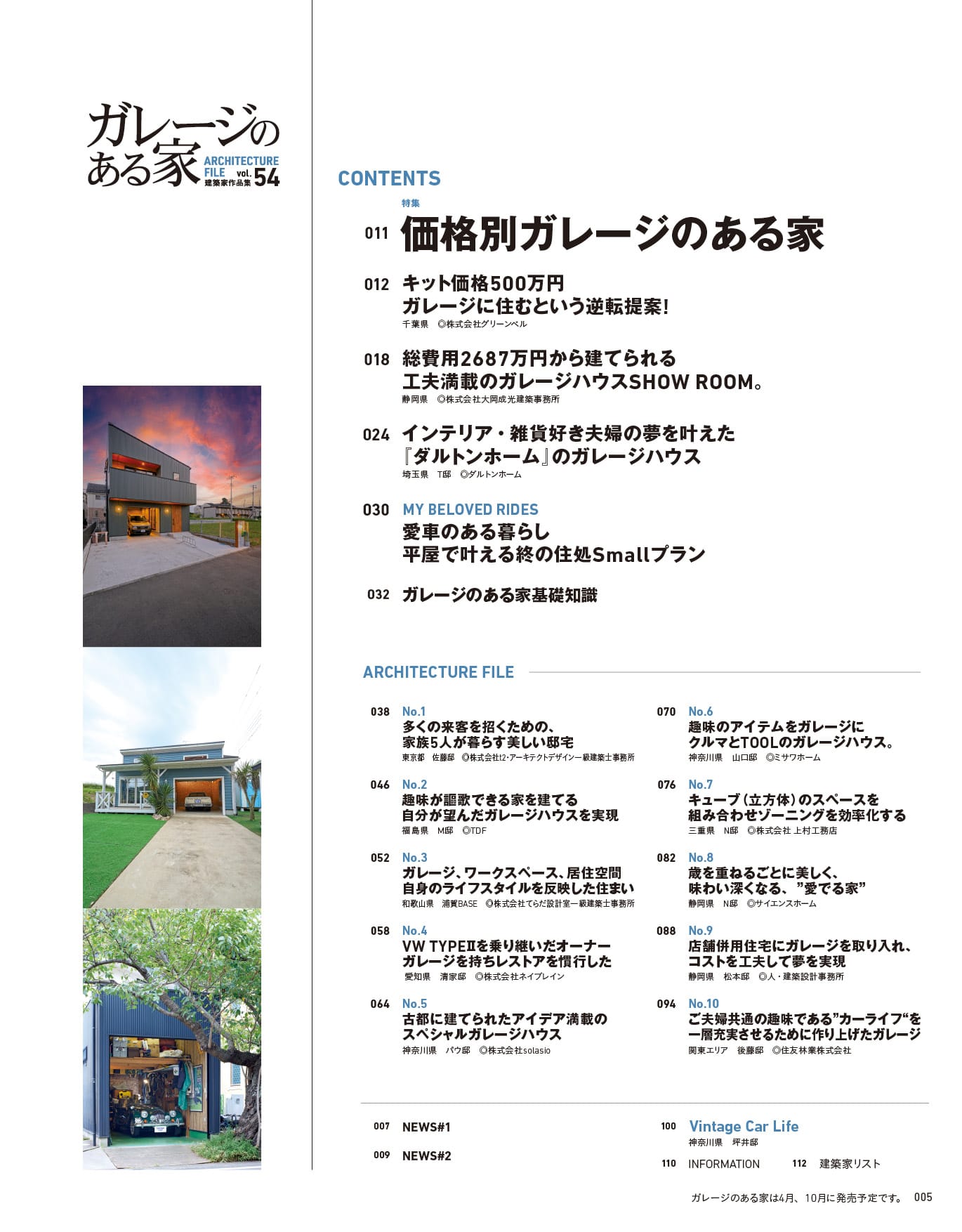 『ガレージのある家 vol.54』の巻頭特集は、「価格別 ガレージのある家」。
