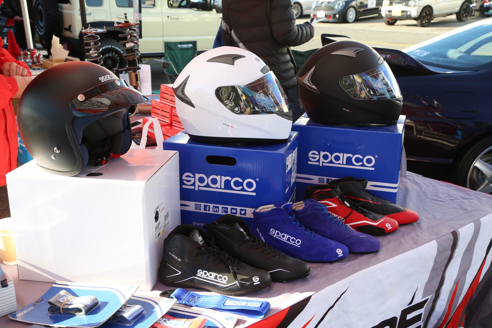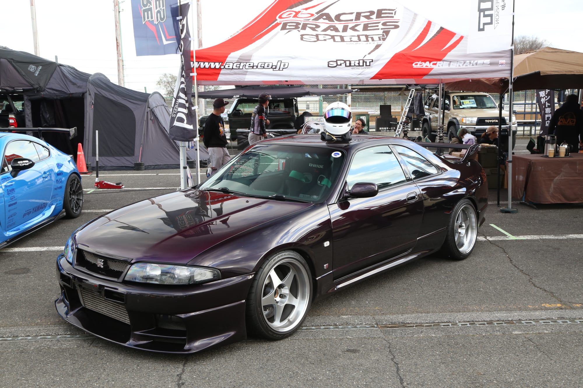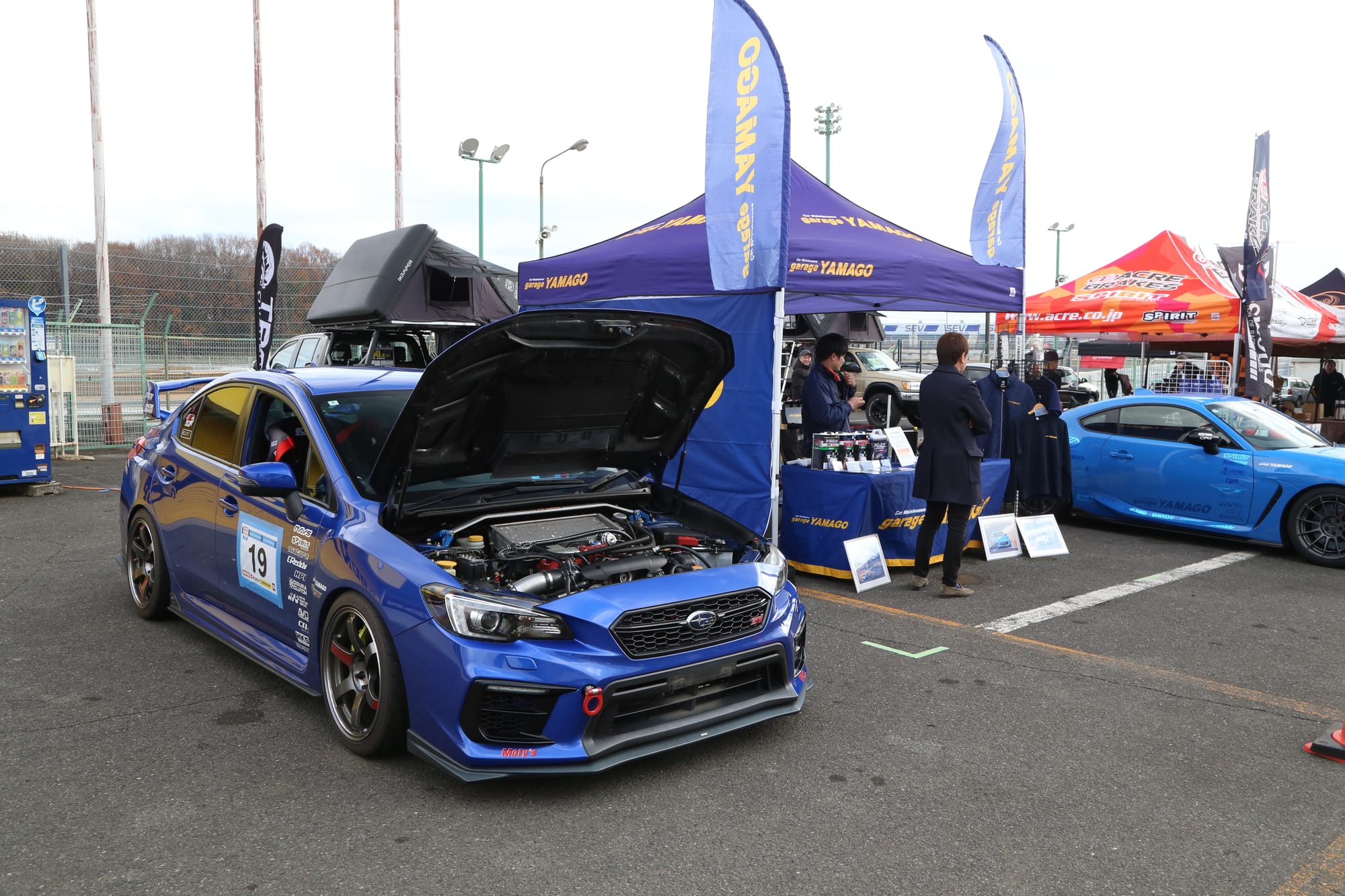 グランドスタンド裏ではミーティングイベントも同時開催。パドックの出展ブースにはアクセサリーや強化パーツ類、デモカーも並べられた。