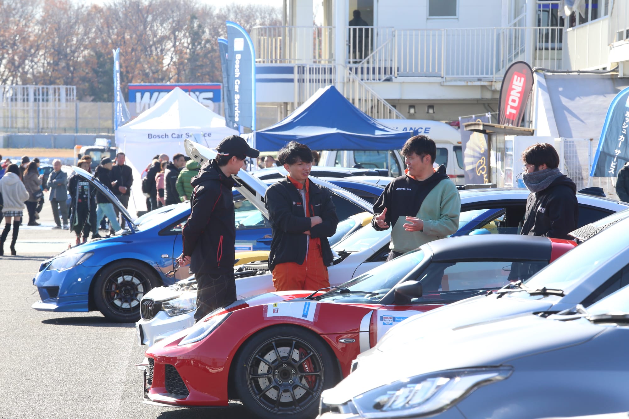 今回、Tipo編集部が取材にお邪魔したのは、スポーツ走行の聖地ともいえる茨城県の筑波サーキット・コース2000で昨年末に行われた「BCSサーキットミーティング」である。これは、ボッシュカーサービス関東ブロックの主催による今回で5回目を数える年末の恒例のサーキット走行イベントだ。BCS加盟店のユーザーを対象に、“クルマで走る楽しさを実感してもらうと同時にモータースポーツの楽しさを知ってもらおう”という趣旨なので、カリカリにラップタイムを競うというよりも、参加者のクルマのパフォーマンスやドラテクに応じて細かくクラス分けをして、安全にスポーツ走行が楽しめるよう工夫されたプログラムが特徴である。