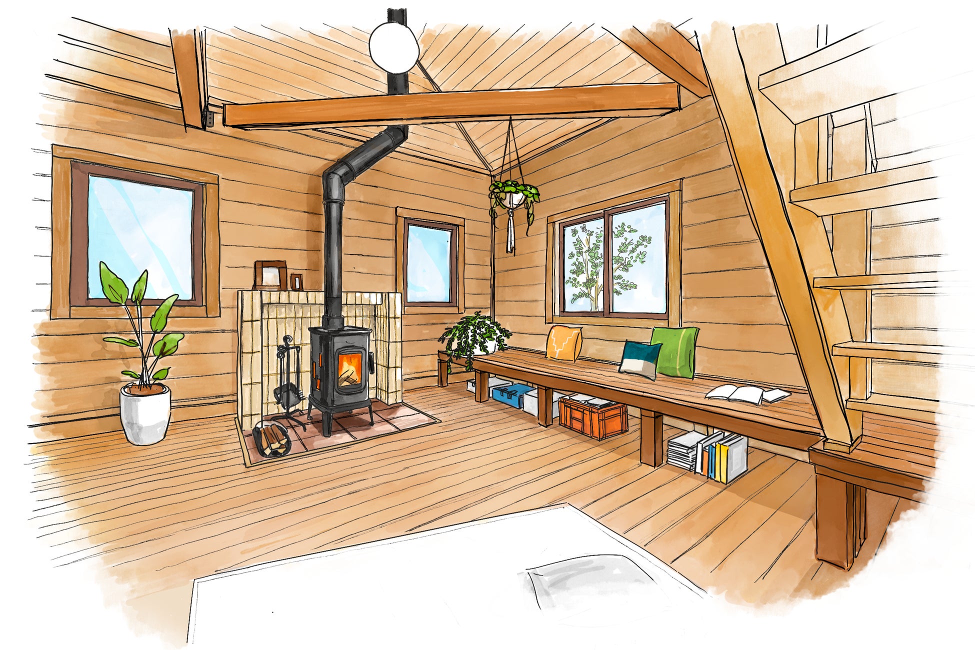 「風のログ」は、自然の中の”遊びの拠点”としてのログハウスという価値観を大切に、今の時代に合わせて生活動線の合理性も取り入れ、アップデートした特別モデルだ。