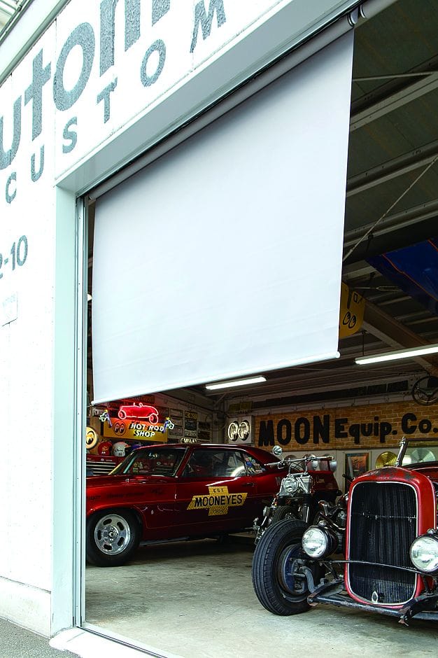 横浜市にある『MOONEYES』。 ショップの裏に建築されたガレージは、 いつも買い物にきたゲストたちを出迎えてくれる。 今回はシャッターを交換したアメリカンなガレージを紹介する。