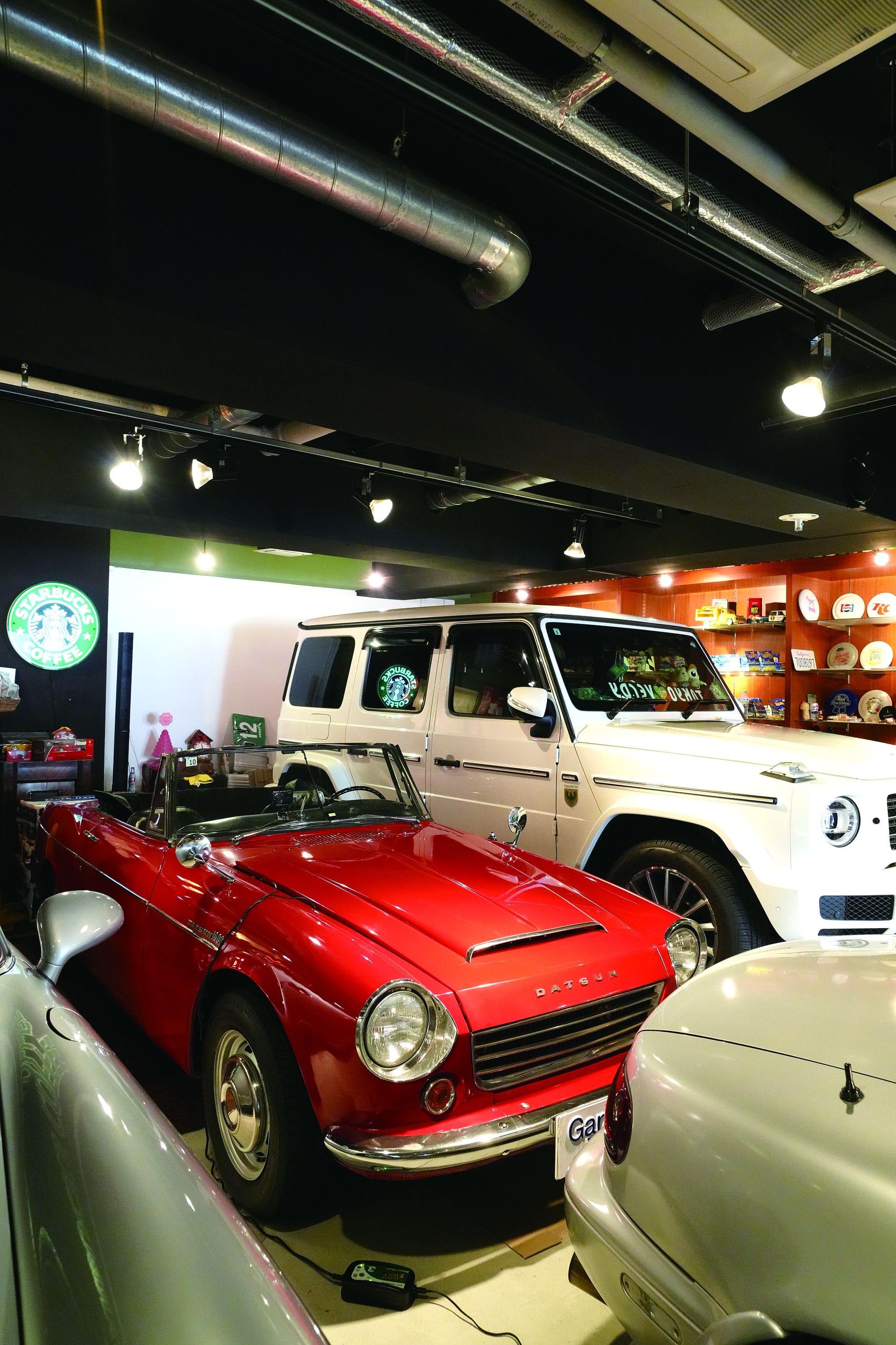 左/1967年式のダットサン フェアレディSPL311が置かれる。旧車は手がかかる場合もあるが、今のクルマには無い魅力がある。 右/スイスのフレームビルダーであるフリッツ・エグリにより作られたEgli HONDA。その奥には前回の取材時から変わらずスバル・360デラックスが置かれる。