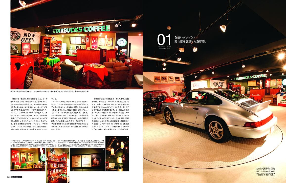 GarageLife でこれまで紹介してきたガレージ数は1000 件をゆうに超えるものとなっている。 その中でもインパクトが強く我々制作陣の 脳裏に焼き付いている物件もいくつかあり、 その中の一つが、43 号の表紙にもなった スターバックスをそのまま取り入れたガレージだ。15 年の時を経て今回再び訪問する。
