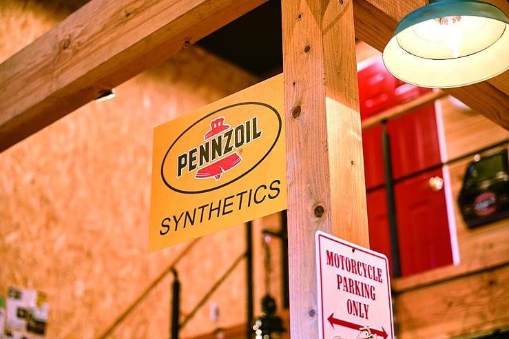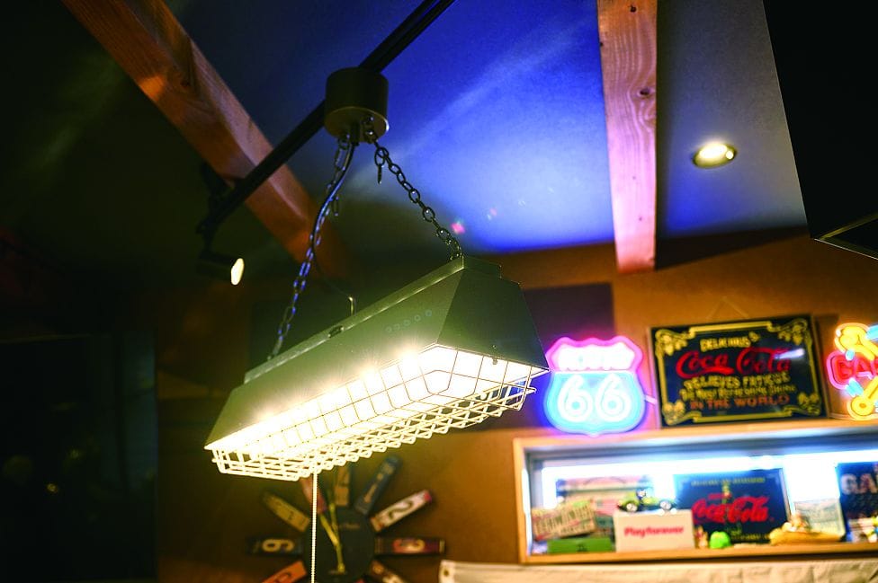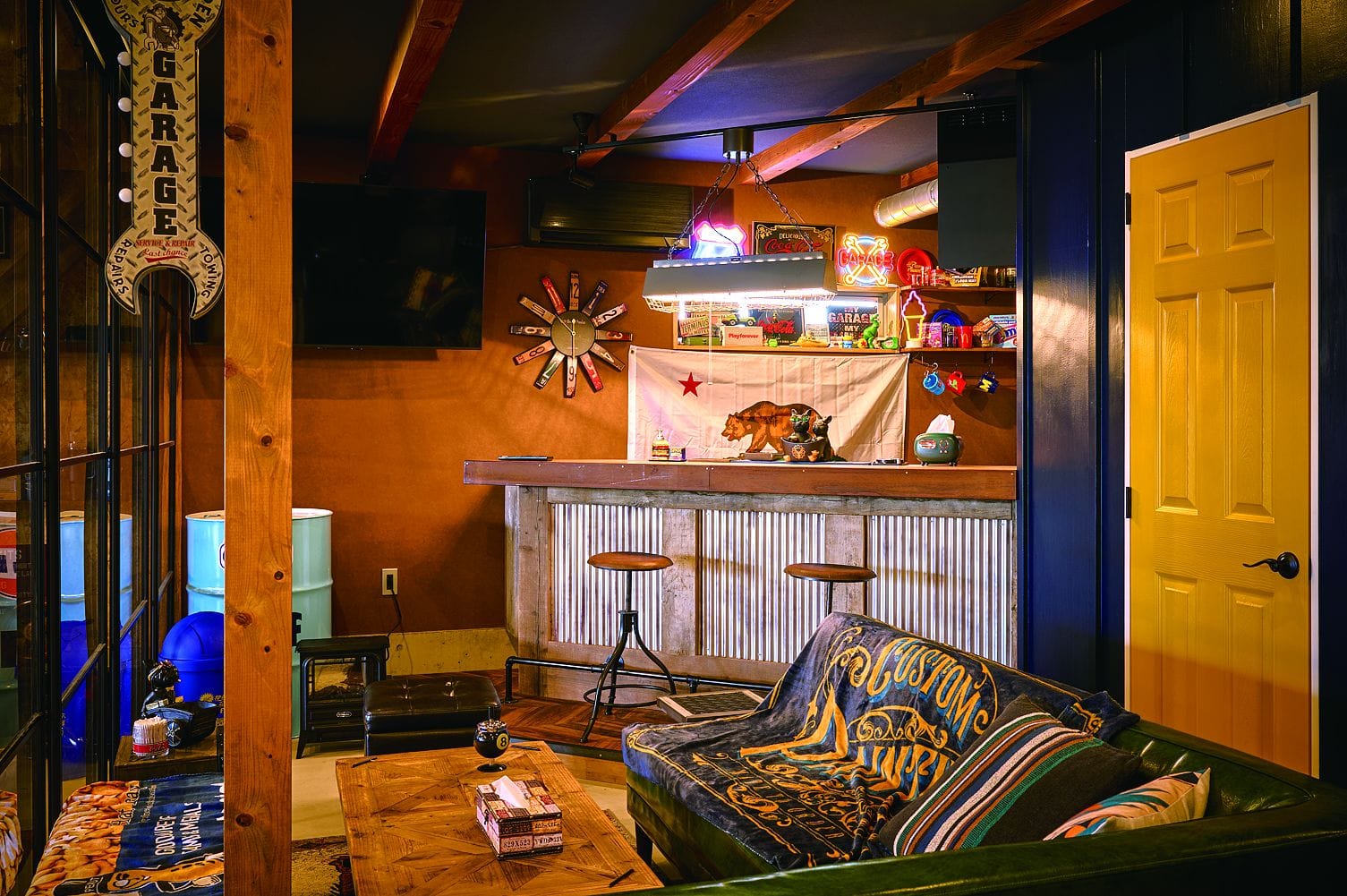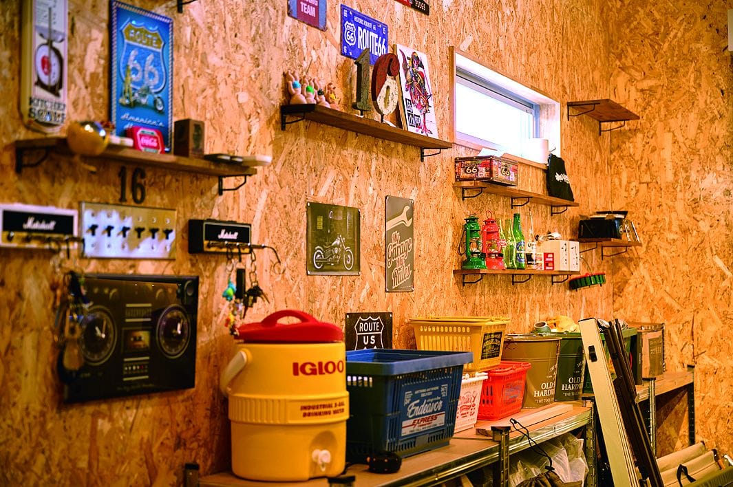ガレージが完成してHさんは、今までは仕事を終えると夜釣りに出かけることが多かったが最近はガレージに直行して作業をしたり、友人たちと時間を過ごしたりと仲間や家族と過ごす時間が多くなったと語る。つまり、Hさんの要望がすべて詰め込まれたスぺースは居心地のいい居住スペースとして新たな遊び場所となっていることが分かるだろう。木造によりガレージ内には柱ができてしまったが、その柱もHさんにとってはサインを飾る重要なスペース。ライティングもすべてHさんが購入するなどビンテージアメリカンを表現したガレージとなっている。施主の要望を理解した建築デザイナー・櫻井さんと施主による打ち合わせを繰り返した結果、アメリカンヴィンテージスタイルのガレージが完成したのである。