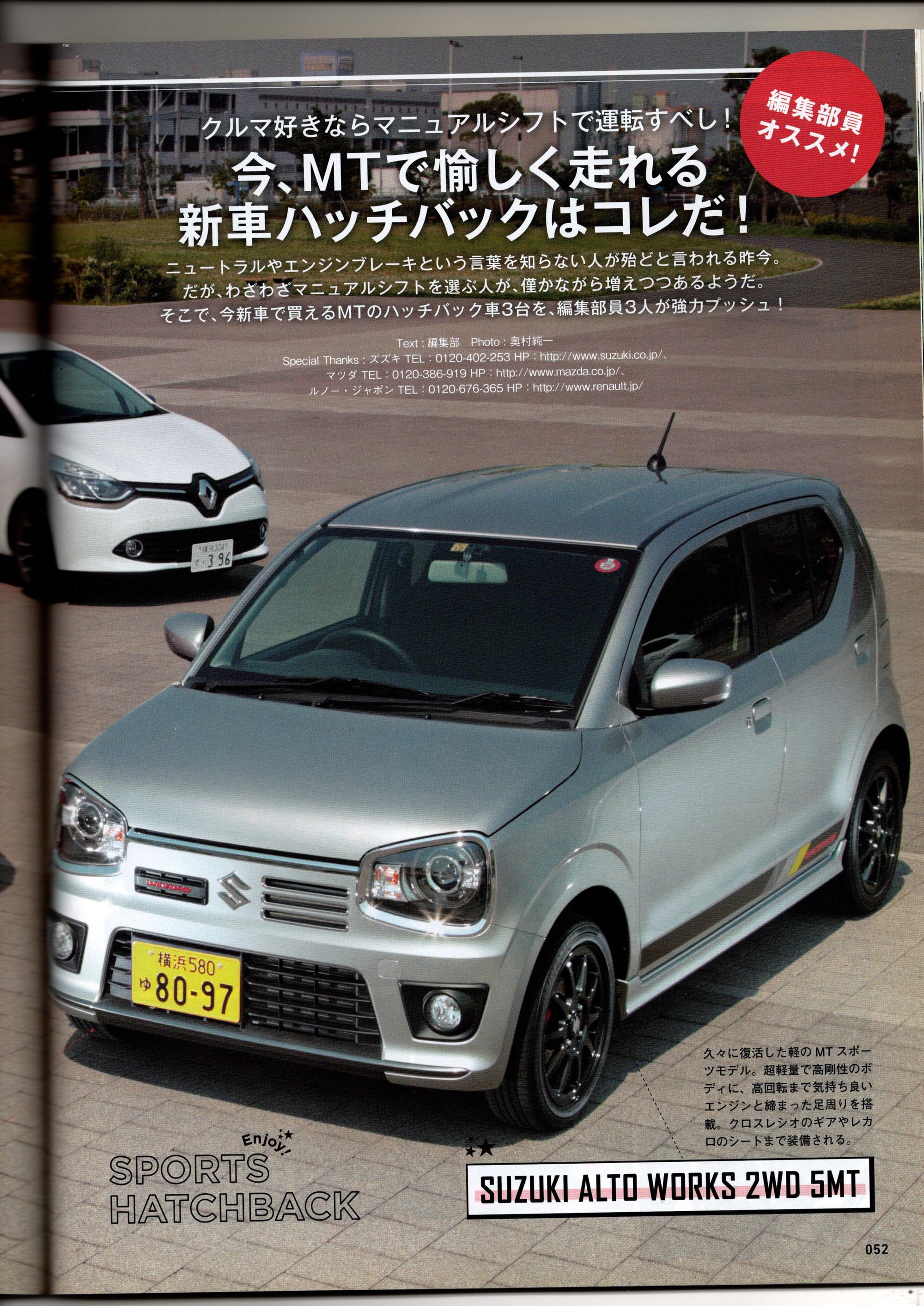 Tipo 2016年7月号。編集部員3人が好きなMTハッチバック車を持ち寄る企画で、アルト・ワークスが登場。