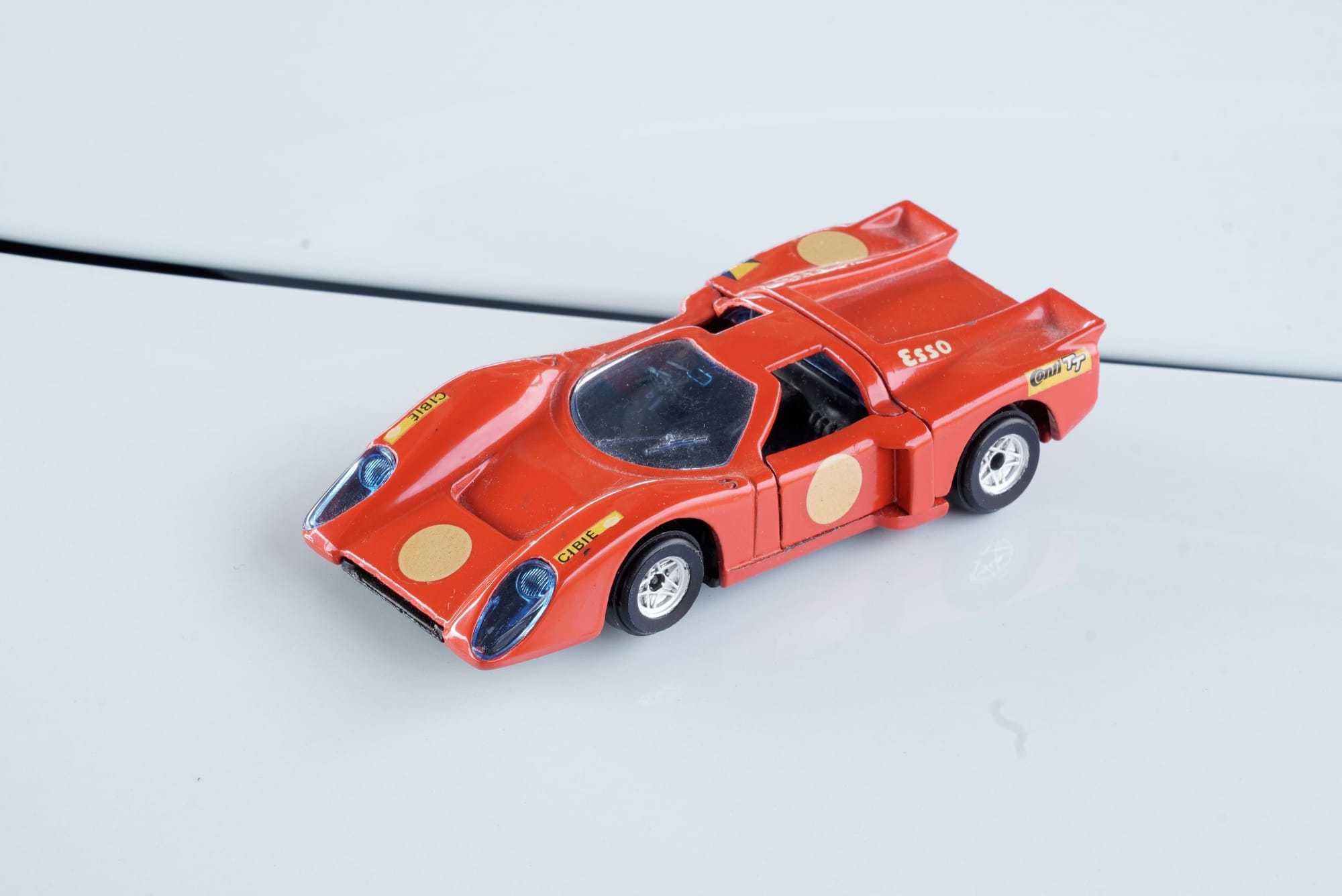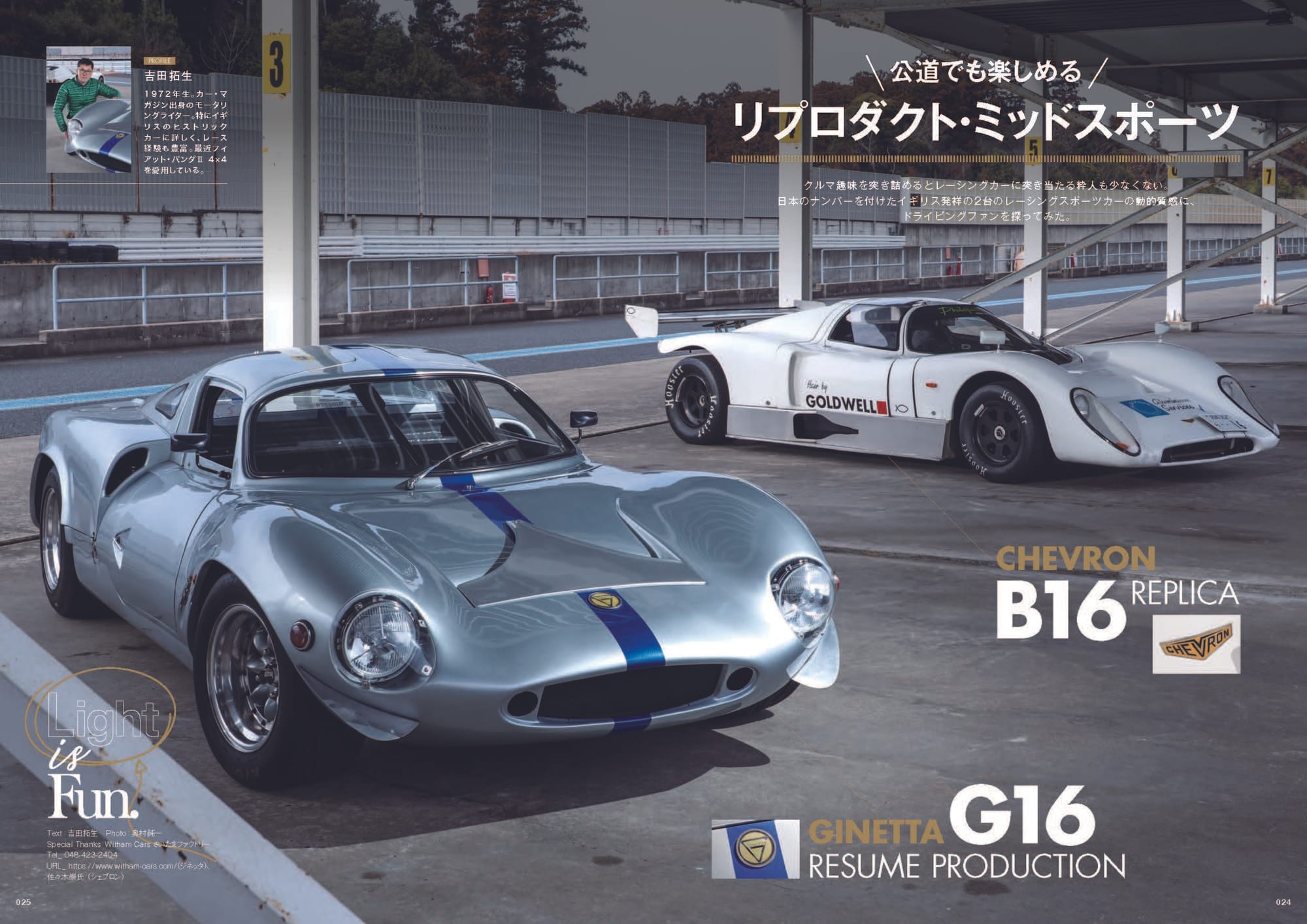 ところがその後、難航していたジネッタG16とシェブロンB16の取材が行えることになり、改めて奥村純一カメラマンにポリトーイのシェブロンを撮影していただいたのです。これも実車の取材当日、袖ヶ浦フォレストレースウェイのピットガレージで、同時に取材していたアルピーヌA110のフロントフードの上で撮影されました。このためフェンダーとの境目が写っていますが、誌面ではもちろん消えています。