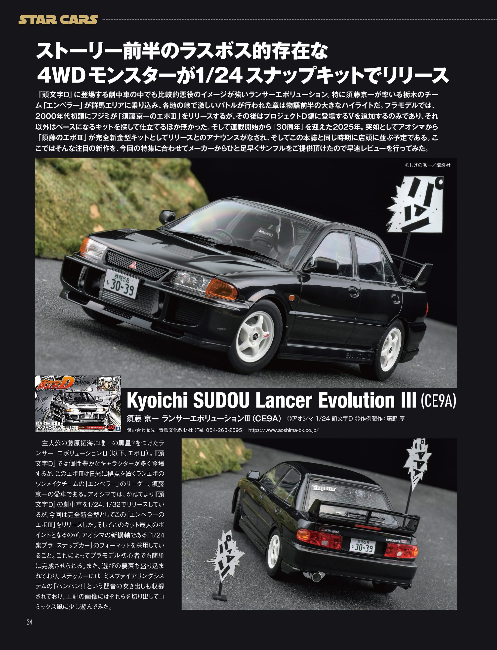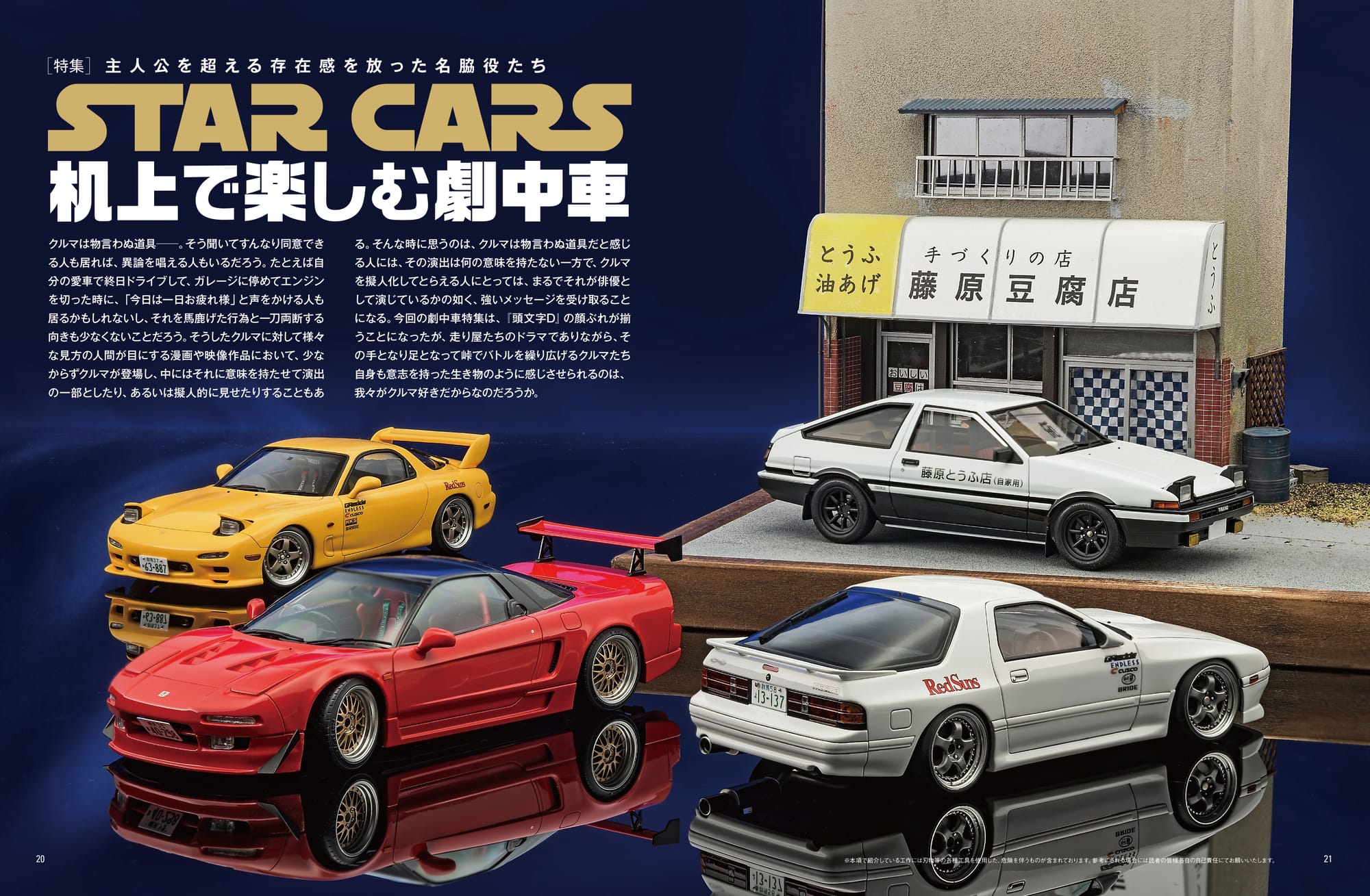 また、人気連載「昭和の郷愁」では、あのとうふ店をフルスクラッチで製作するなど、実に盛り沢山!そして、ミニカーの小特集でも『頭文字D』関連アイテムが多数掲載など、ファンには堪らない内容となっている。