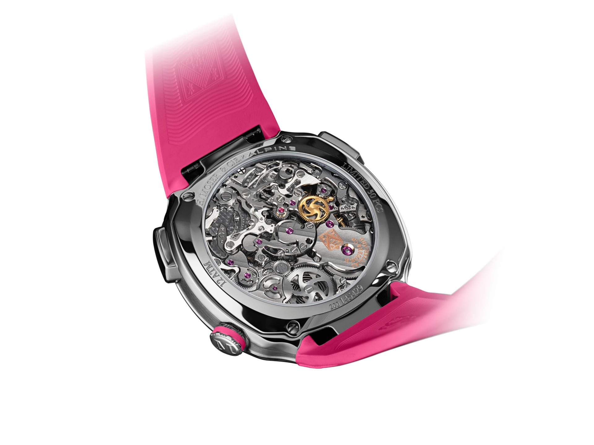 今作の特徴は2026年のBWTアルピーヌF1チーム新型マシン「A526」の大胆なカラーリングへのオマージュとなる「ピンク」である。アジェノー社製の高性能自動巻きムーブメント「Cal.HMC700」を搭載したスケルトン・バージョンの「ストリームライナー・アルピーヌ ドライバーズ ピンク エディション」では、ダイアルインデックスと時・分針、「M」刻印入りねじ込み式リュウズのラバーリング、一体型ラバーストラップが、その機械式時計とセットとなるデジタルウォッチの「ストリームライナー・アルピーヌ メカニック ピンク エディション」には、アナログダイアルのインデックスとステンレスケース、一体型ラバーストラップが大胆に「ピンク」を纏っているのだ。