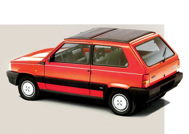初代フィアット・パンダは1979年11月に発表。設計はジョルジェット・ジウジアーロ率いるイタルデザインが担当、シンプルかつコストが安い大衆車として生を受けた。サスペンションは前ストラット、後ろは当初リーフだった。空冷2気筒エンジンの30と、水冷直4OHV903㏄/45psの45が用意されていた。