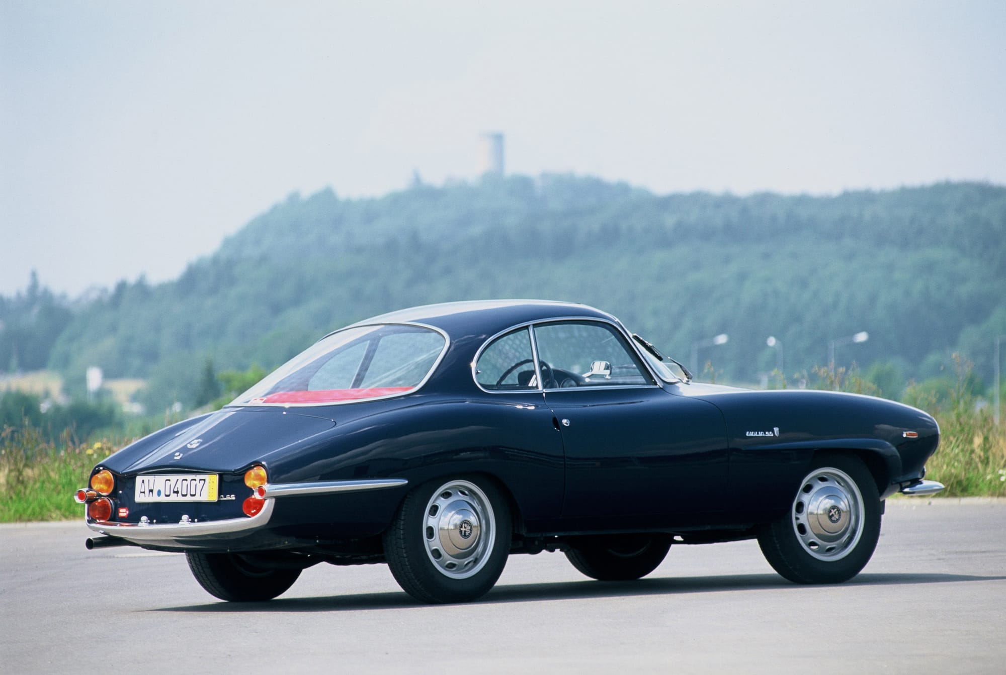 1963年9月:前年デビューしたベルリーナのジュリアに続き、クーペボディのジュリア・スプリントGTがアレーゼ工場で発表される。エンジンは直4DOHC1570ccで106ps。段付きノーズで、グリルは10本の横桟タイプ。インパネはブラック一色。15インチホイール。