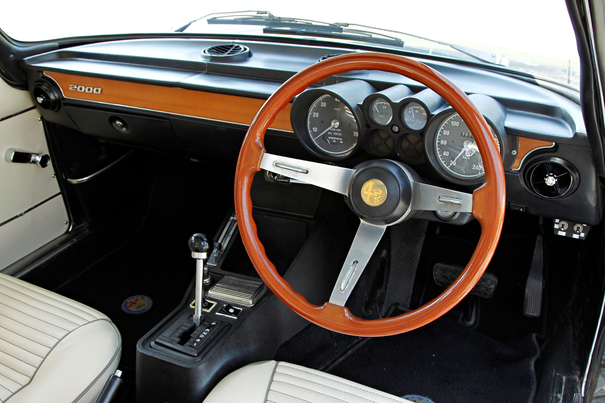 それがジュリア・スプリントGTで、基本的なメカニズムは先代を踏襲。即ち、モノコックシャシーに前ダブルウイッシュボーン、後トレーリングリンク+T字ブラケットのサスペンションを装着し、ベルトーネ(実際はジウジアーロ)・デザインの美しいボディを与えたものだ。小さな段のあるノーズの処理が特徴だった。エンジンは直4DOHC1570cc+ツインキャブで106psを発揮。5速MTと4輪ディスクブレーキも装備された。