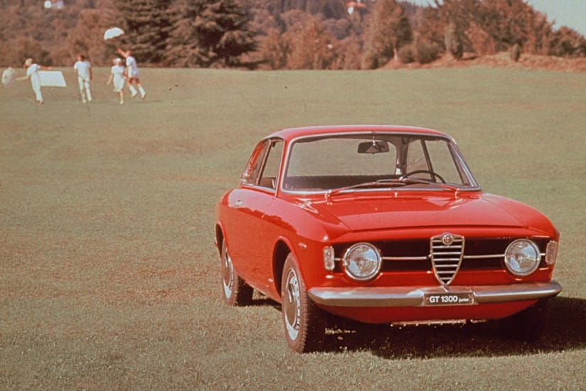 1963年9月:直4DOHC1290ccで89psを発揮するエンジンを搭載した、GT1300ジュニアがバロッコ・テストトラックで発表される。エンジン以外は基本的にジュリア・スプリントGTVと同じだが、グリルは格子の上に横一本バーとなり、ステアリングは樹脂製となって、内装のトリムがモケットからビニールになるなど、コストダウンと軽量化が図られた。