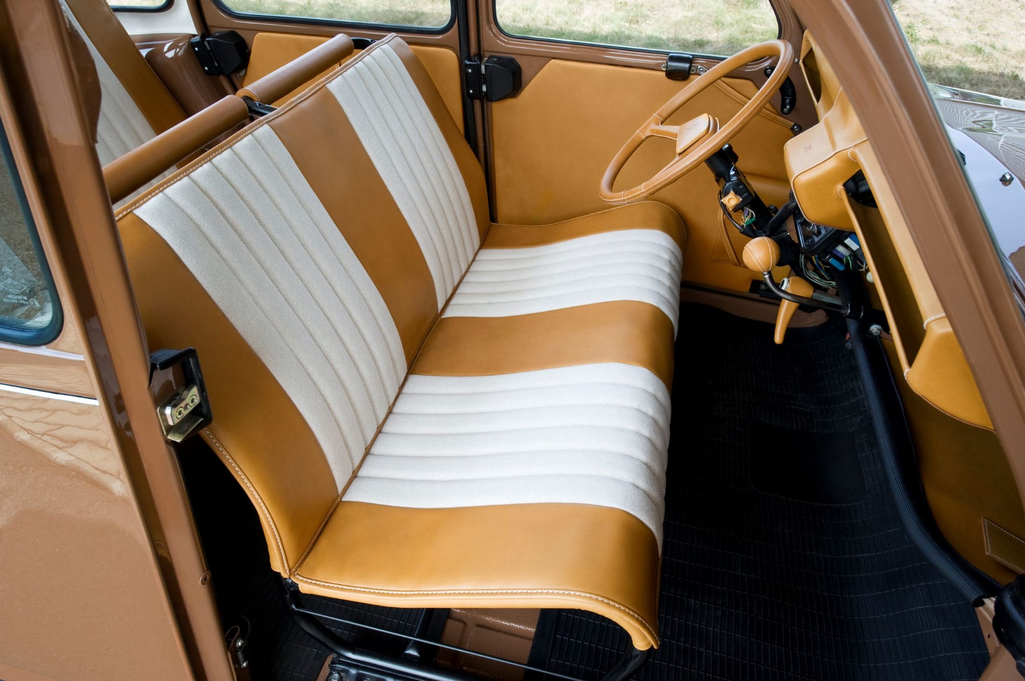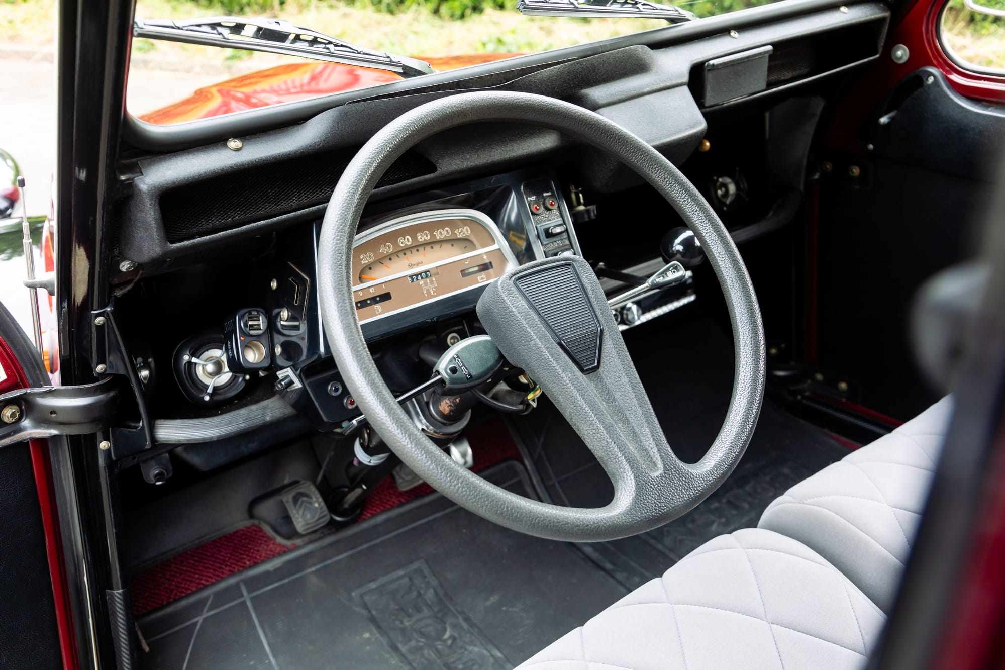 おそらく十数年ぶりに2CVに乗ったと思うのだが、シートに座ったら、記憶より硬めで少し驚いた。おそらくスポンジを新しいものに交換して日が浅いからだと思うが、使い込むうちにあのふわりとした感覚になるだろう。