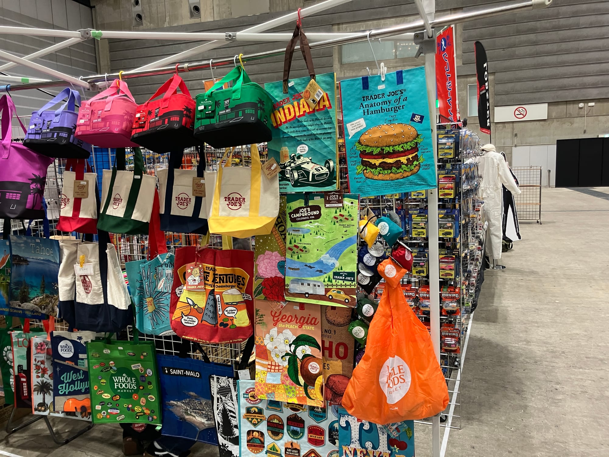 自動車趣味歴60年以上という代表の戸井陽司さんが、リタイアメントライフとして始めたクルマ関連のアンティークショップはすでに創業十数年。東京~名古屋エリアの主だったイベントにはたいていブース出展しているそうで、Tipoニューイヤーミーティングでは、得意分野であるホーロー看板、ヴィンテージミニカー、オートモビリア(自動車関連アンティーク)各種と買付の際に仕入れた海外スーパーのエコバッグといったアイテムの展示・即売会を実施してくれるのだ。