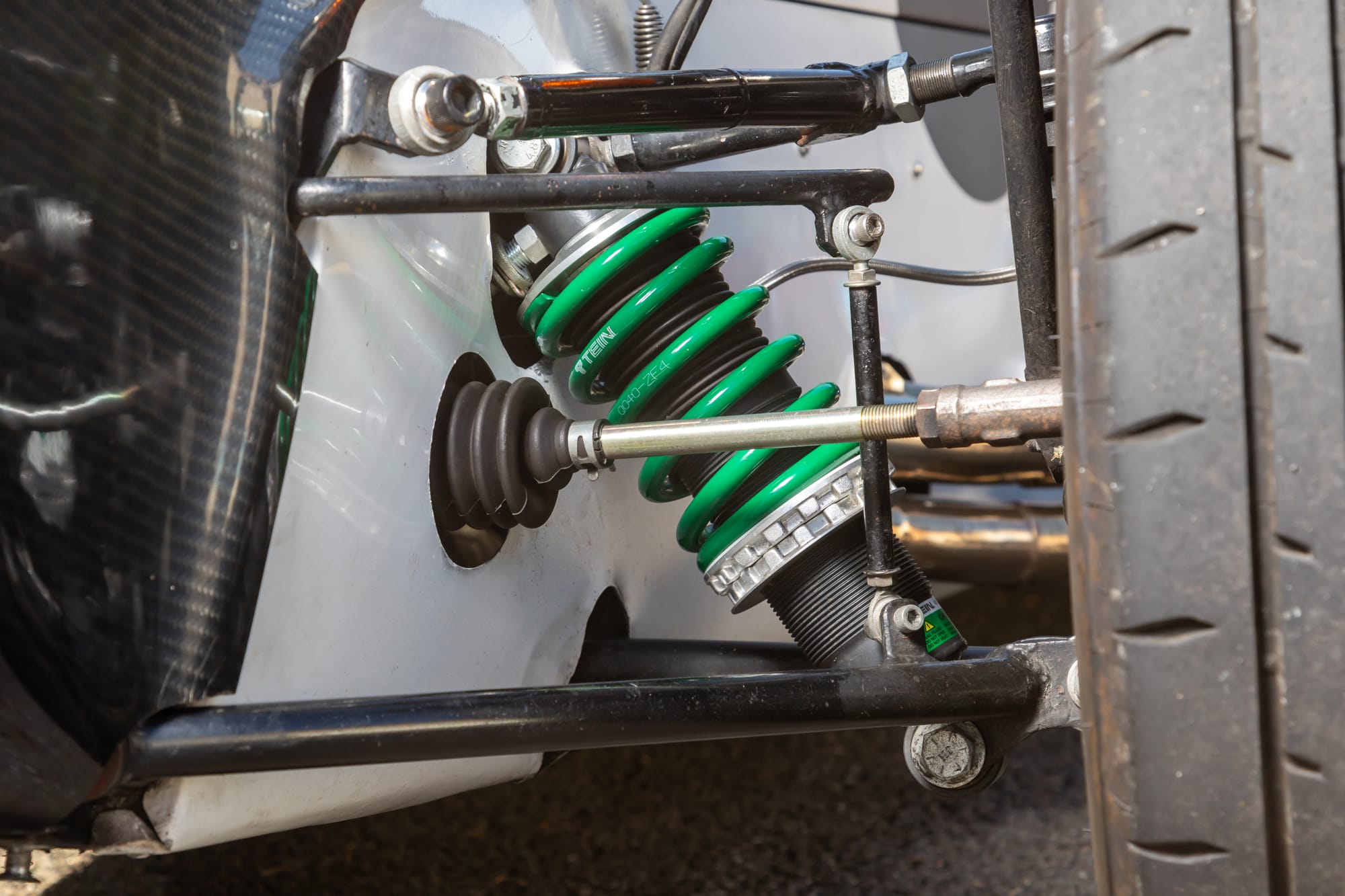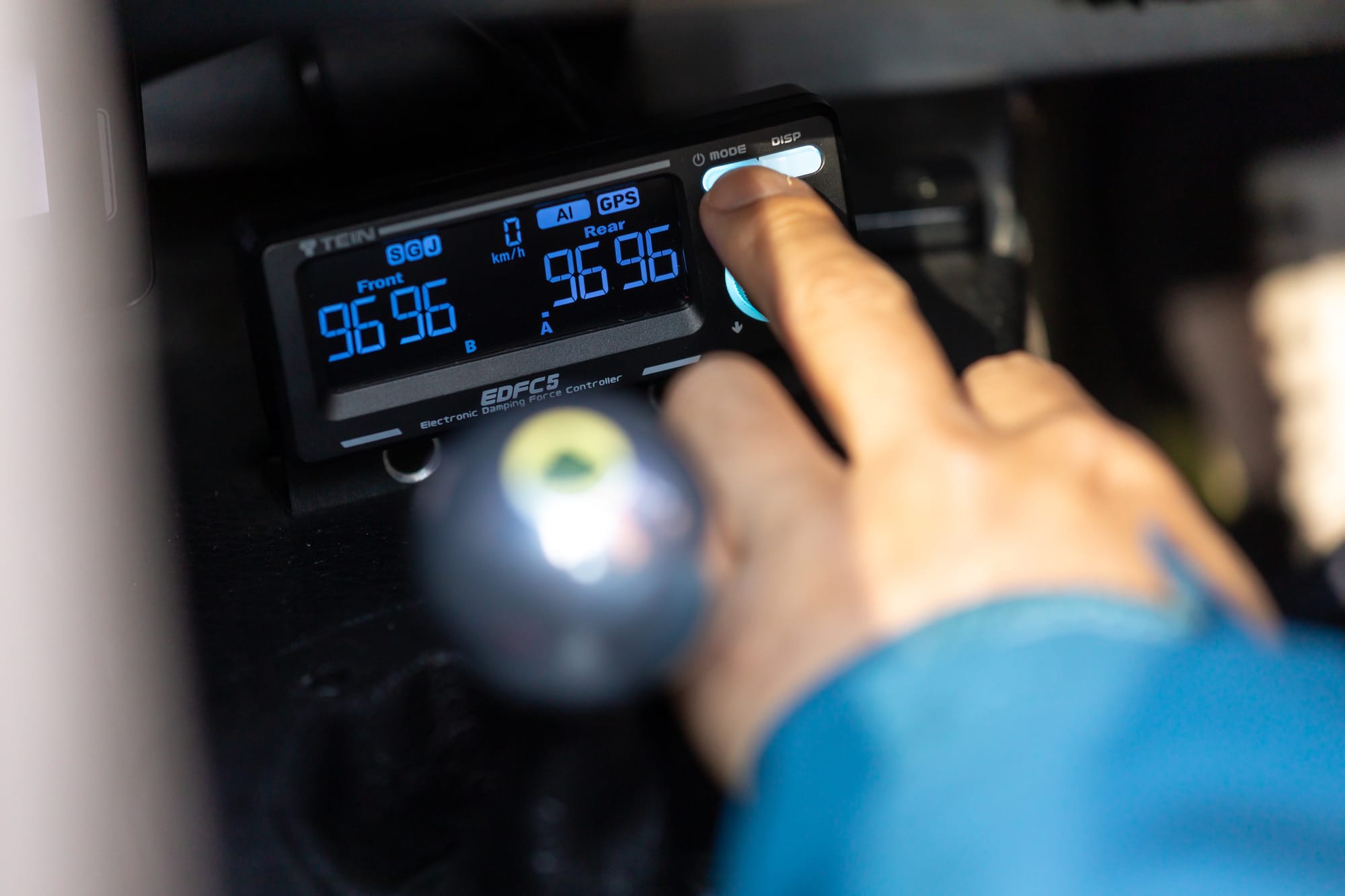 【96段階という細かな調整で最適な走りを提供する】サスペンション専門メーカーのTEINが開発した「EDFC5」は、ダンパーの減衰力調整をモーターで自動制御。Gセンサーやジャーク制御、スピード制御といった各種センサーによって、1/100秒単位で制御している。96段階という幅広い調整領域を持つことで、様々な路面や走りに対応することが可能だ。専用のコントローラーで、コクピットから簡単に操作ができる。ストリートからサーキットまで1000kmを超えるテスト走行を経てセットアップされた。価格:50万円。